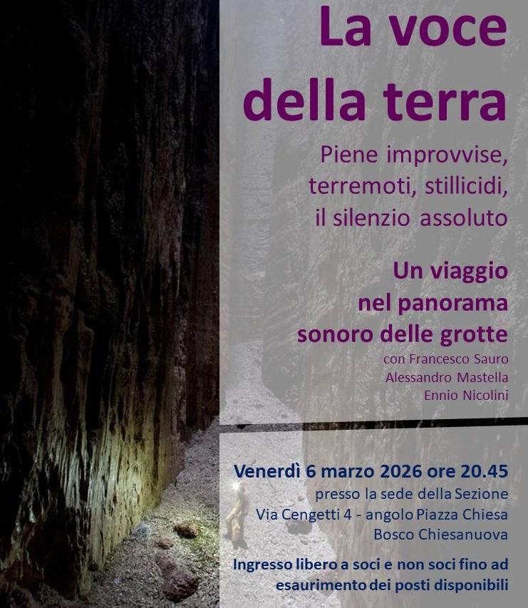 VENERDI' 6 MARZO 2026 alle ore 20:45 presso la sede del CAI in via Cengetti 4 - angolo Piazza Chiesa (Bosco Chiesanuova).