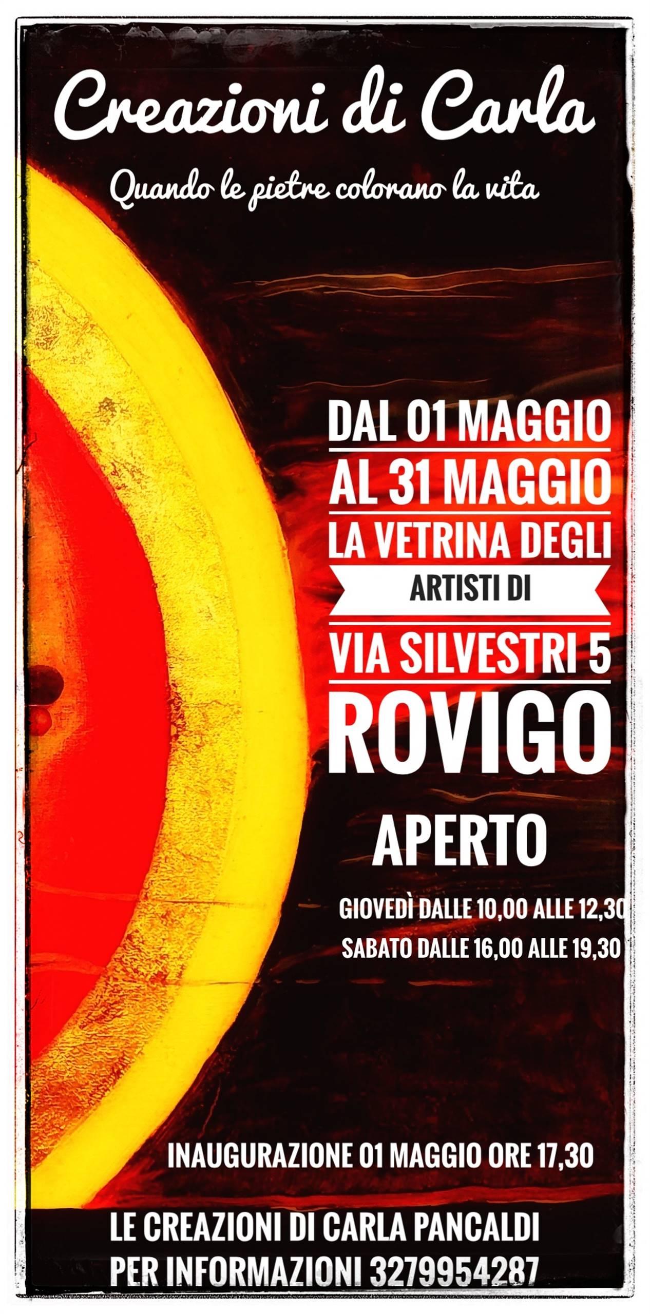 Dal 01 maggio al 31 maggio nuova esposizione alla Vetrina degli Artisti di Via Silvestri 5 Rovigo, gestita da Giada Rossin dal titolo "Le creazioni di Carla - quando le pietre colorano la vita".