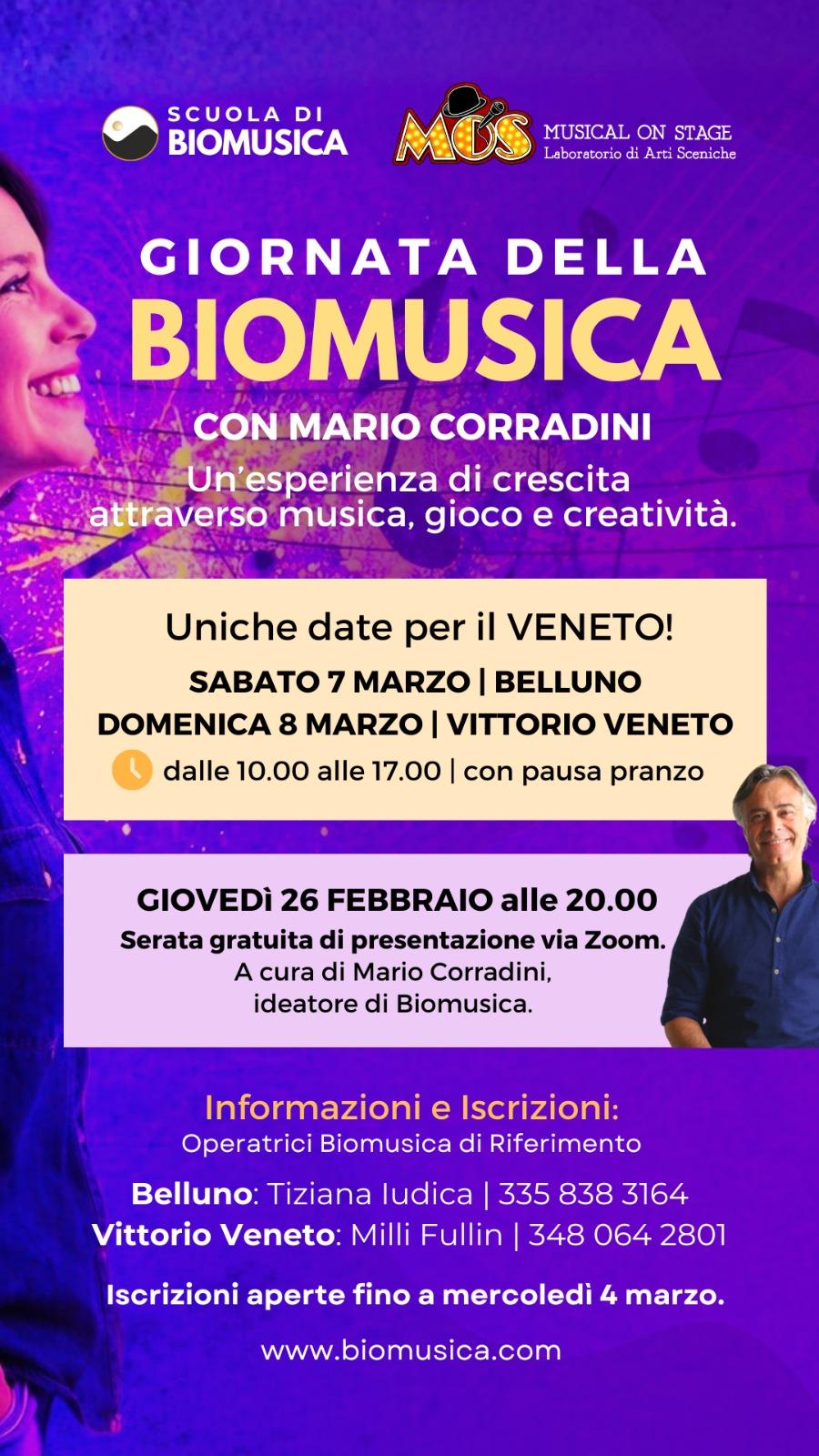Promossa da MOS - Musical On Stage e dalla Scuola di Biomusica international, la Giornata della Biomusica offre un'esperienza immersiva tra suono, corpo ed emozione. L'esperienza sarà guidata da Mario Corradini, musicista italo-argentino e ideatore della Biomusica, che promuove il benessere attraverso l'uso consapevole del suono.