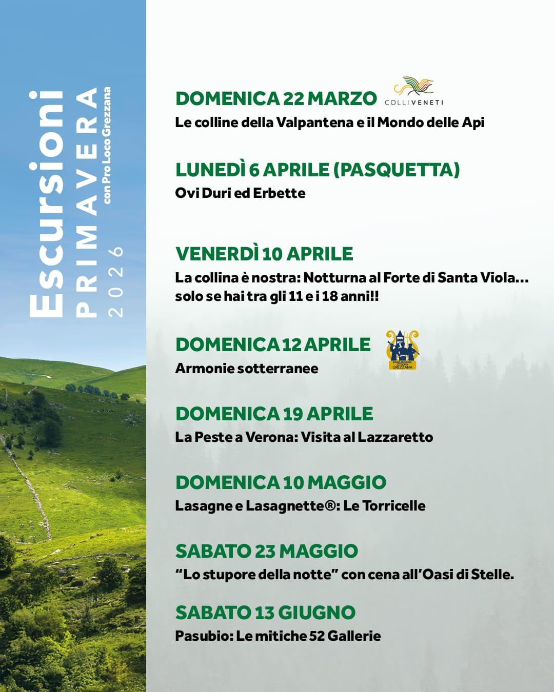 Otto splendide escursioni organizzate dalla Pro Loco Grezzana...affrettatevi a prenotare per non perdervi questa bellissima esperienza!