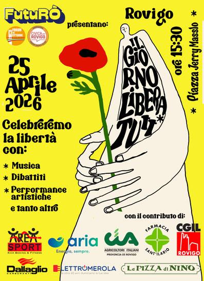 In occasione della Festa della Liberazione, il 25 aprile a partire dalle ore 15.30, Piazza Masslo a Rovigo ospiterà Giorno Libera Tutt*, un pomeriggio di incontri, cultura e partecipazione dedicato al tema delle libertà individuali e collettive.