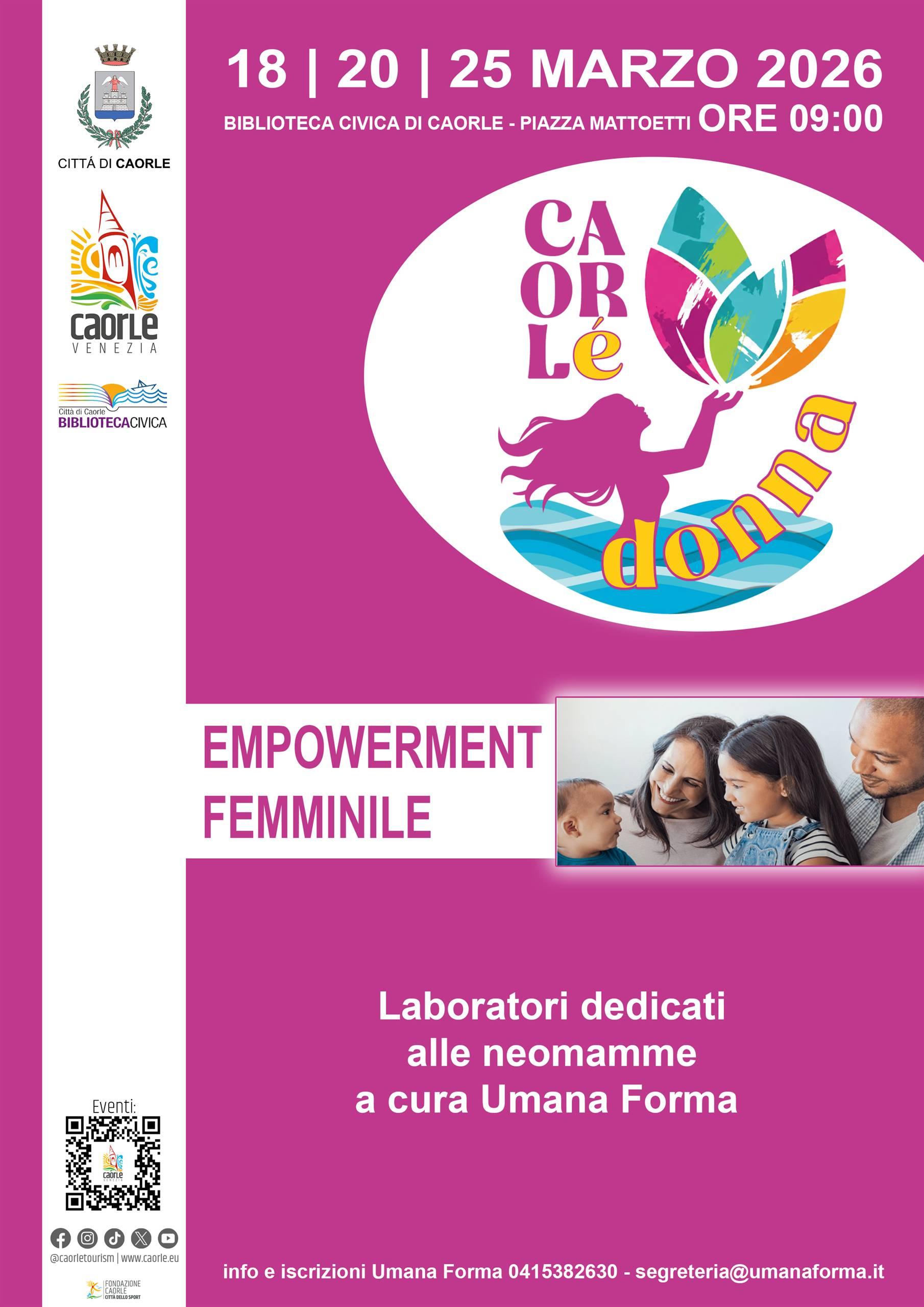 Gli incontri, promossi dall'Amministrazione Comunale di Caorle nell'ambito della rassegna Caorlèdonna, fanno parte del Progetto N.O.I., coordinato da Umana Forma e realizzato in sinergia con l’Ambito Sociale VEN_10.