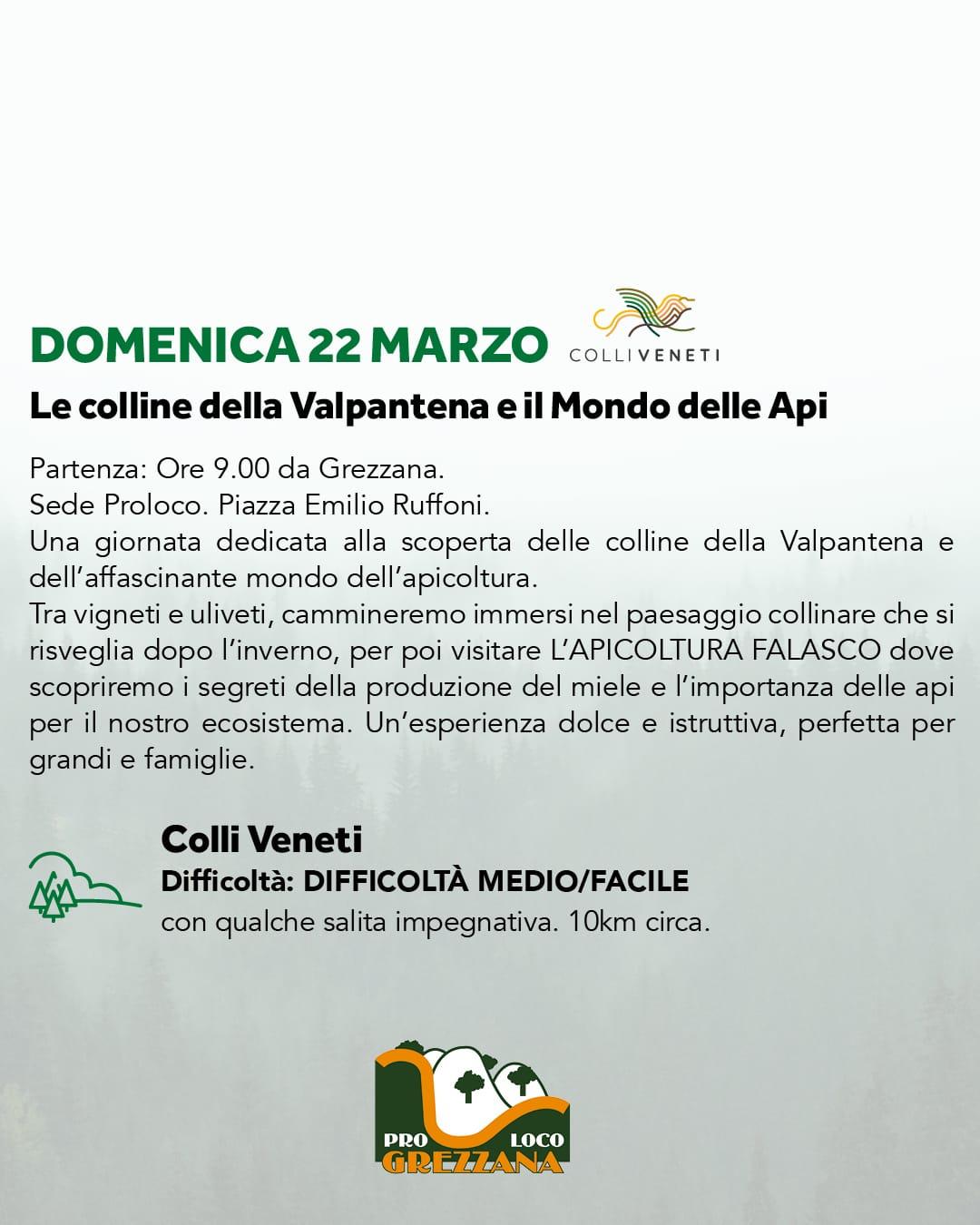 Una giornata dedicata alla scoperta delle colline della Valpantena e dell'affascinante mondo dell'apicoltura. Tra vigneti e uliveti, cammineremo insieme immersi nel paesaggio collinare che si risveglia dopo l'inverno, per poi visitare l'apicoltura Falasco dove scopriremo i segreti della produzione del miele e l'importanza delle api per il nostro ecosistema.
