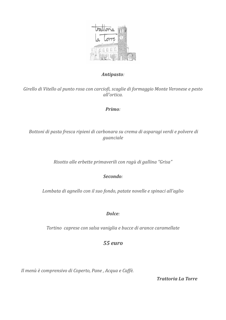 Coperto, pane, acqua e caffe compresi (vino e bibite esclusi)