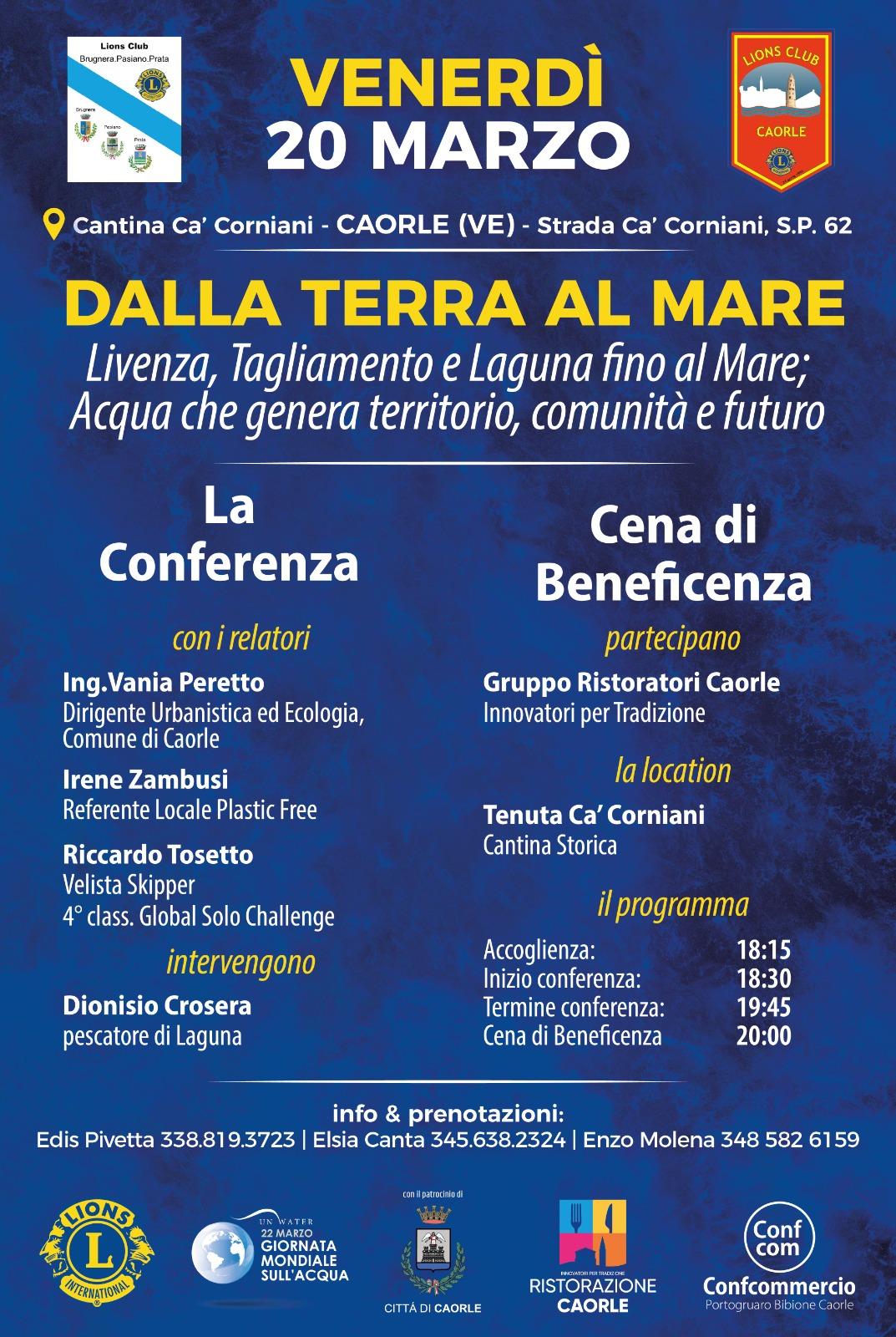 Promossa dal Lions Clubs International e organizzata dal Lions Club Caorle, la serata si aprirà con una conferenza dedicata al valore dell’acqua come elemento centrale per il territorio, capace di modellare paesaggio, economia e comunità locali. Attraverso gli interventi di esperti e testimoni del territorio verranno approfonditi i temi della tutela ambientale, della sostenibilità e del rapporto tra fiumi, laguna e mare.