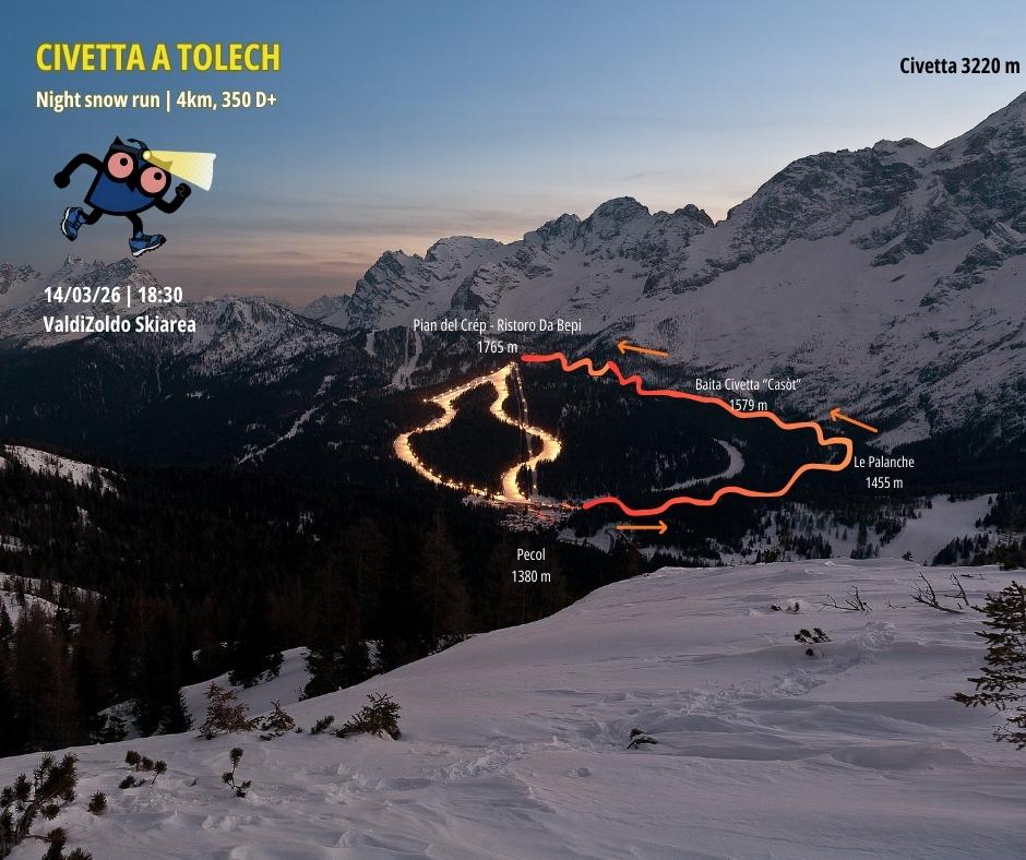 Prima edizione di questa gara di corsa in montagna su terreno innevato alla luce delle lampade frontali.