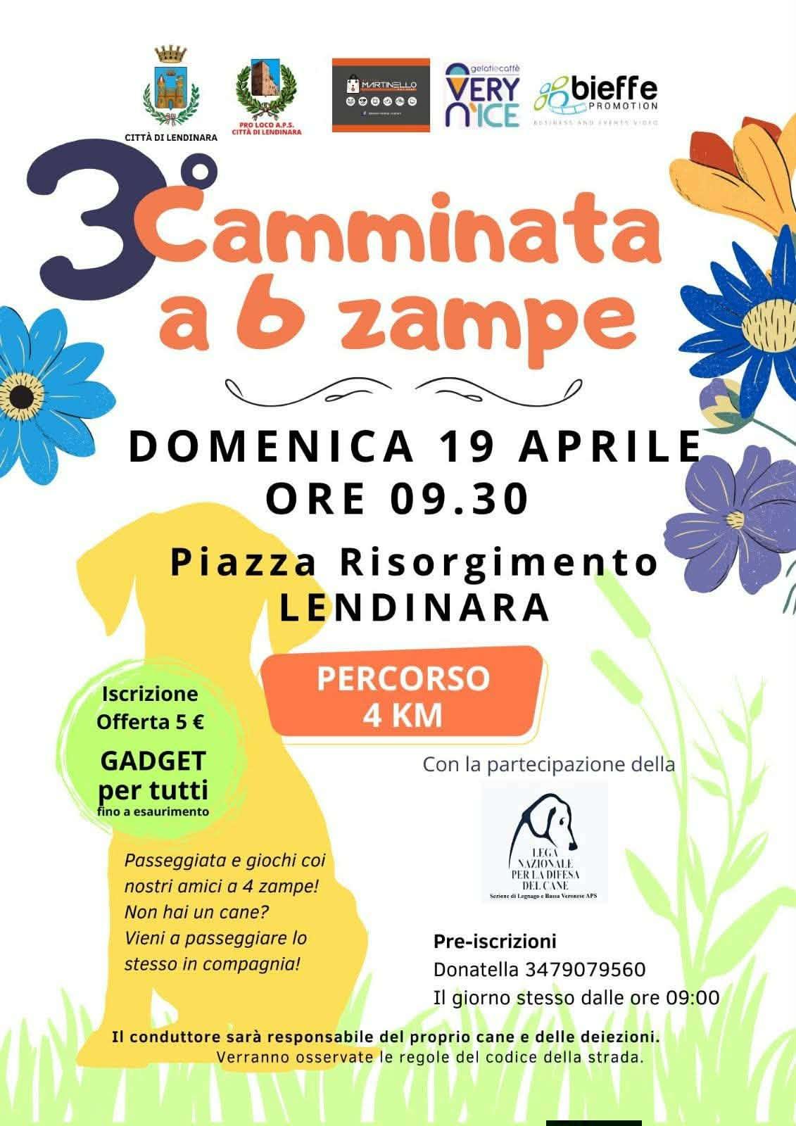 Domenica 19 Aprile alle ore 9:30, si terrà la 3° Camminata a 6 zampe! Dove? Si partirà da Piazza Risorgimento a Lendinara per una passeggiata di 4 km. Tanti giochi per i nostri amici a 4 zampe e se non hai un cane, sei il benvenuto!