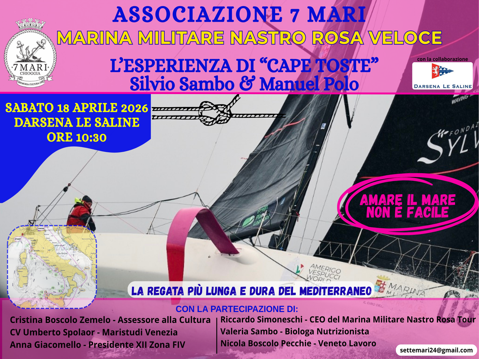Silvio Sambo e Manuel Polo racconteranno l’esperienza di “Cape Toste”, all’interno del progetto Marina Militare Nastro Rosa Veloce: un percorso fatto di resistenza, strategia e profondo legame con il mare.