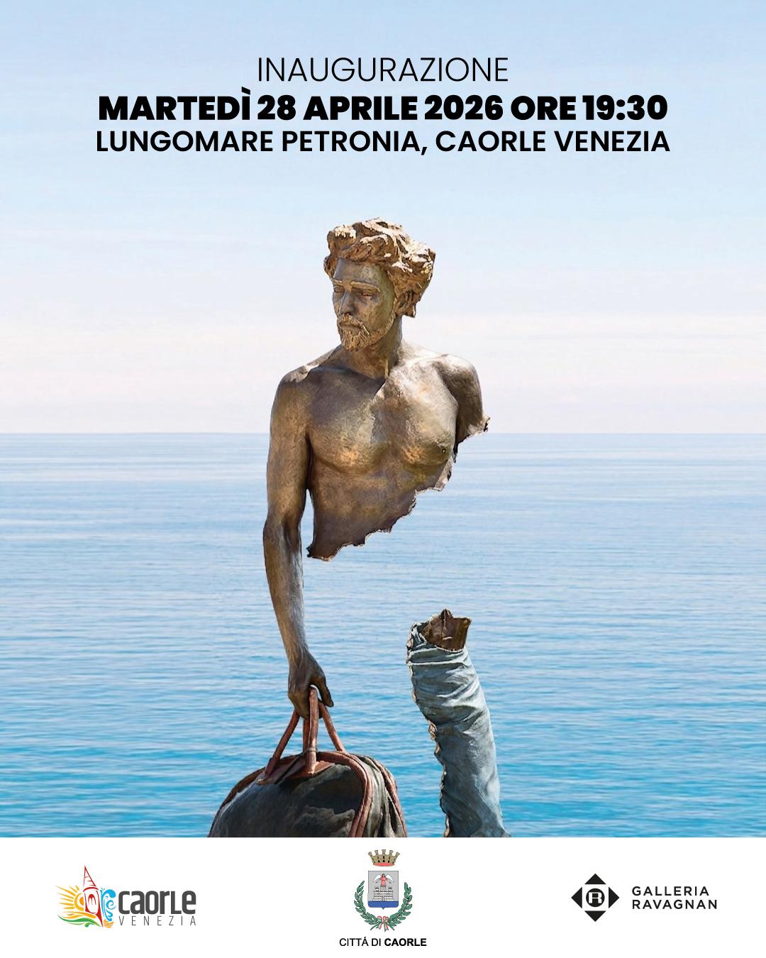 Dal 28 aprile al 30 ottobre 2026 Caorle ospiterà due sculture monumentali del celebre artista italo-francese Bruno Catalano: “Hubert” e “Khadine”, appartenenti alla suggestiva serie Les Voyageurs (I Viaggiatori).