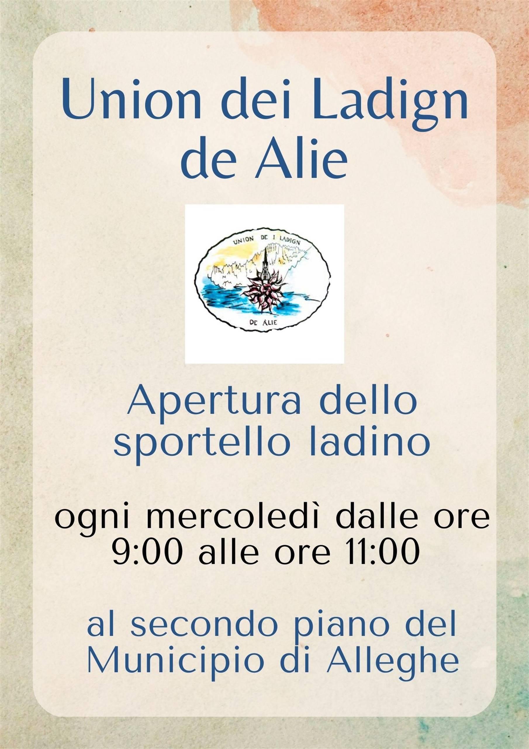Sportello ladino al secondo piano del municipio di Alleghe ogni mercoledì dalle ore 9:00 alle ore 10:00