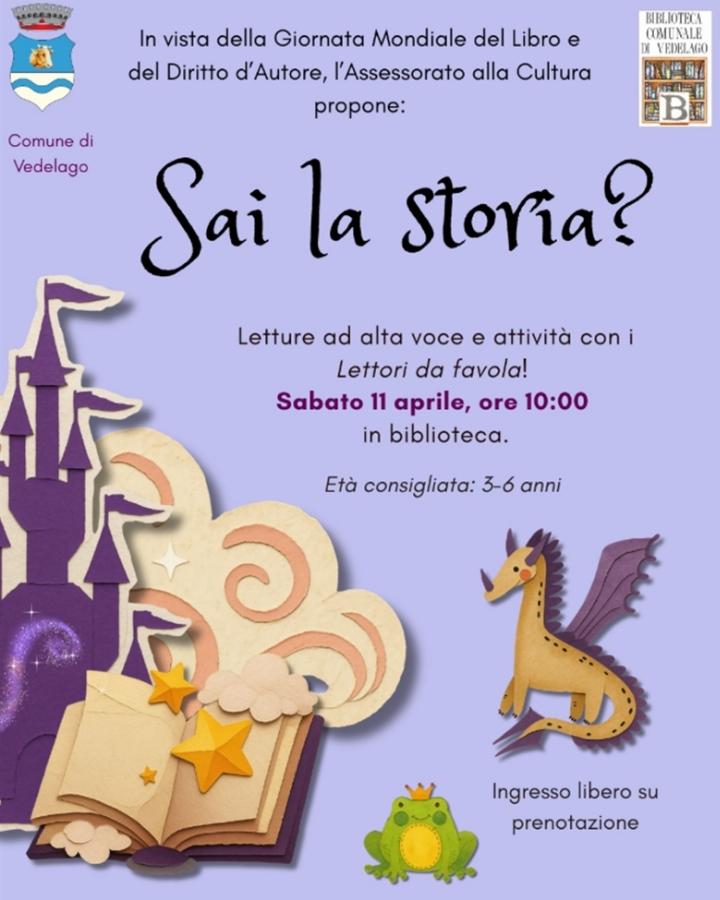 In occasione della Giornata Mondiale del Libro e del Diritto d'Autore, l'Assessorato alla Cultura del Comune di Vedelago invita i più piccoli a partecipare all'iniziativa intitolata "Sai la storia?".