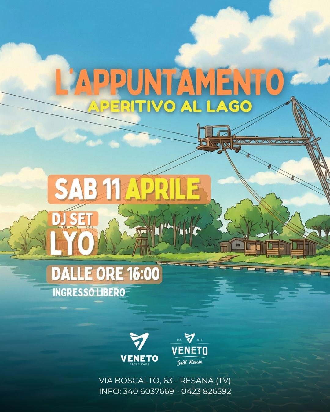 Sabato 11 aprile, a partire dalle ore 16:00, il Veneto Cable Park di Resana ospita "L'Appuntamento - Aperitivo al Lago".