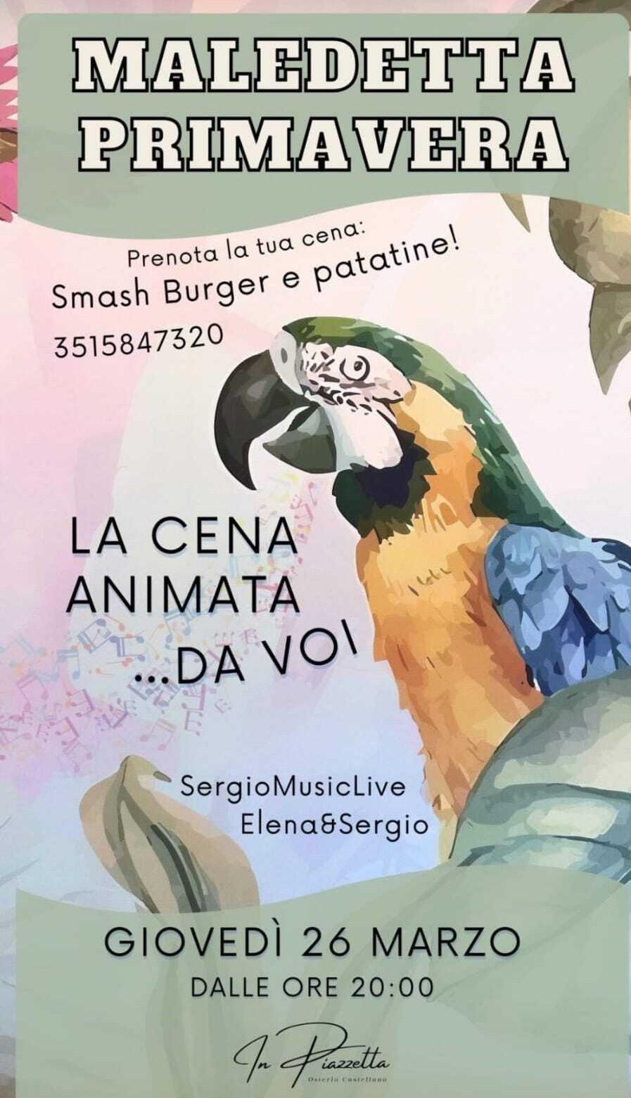 Presso In Piazzetta Osteria Castellana prenota la tua cena, la serata sarà animata da: SergioMusicLive e Elena@Sergio