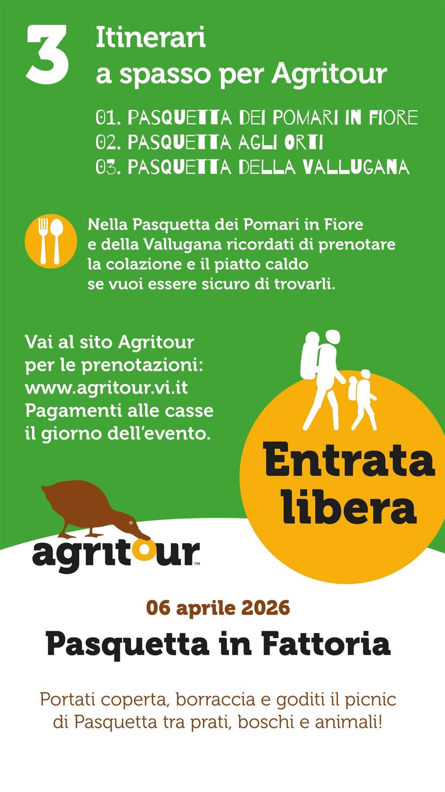 Scopri tutti i programmi e i dettagli in locandina oppure al sito www.agritour.vi.it / contattando info@agritour.vi.it