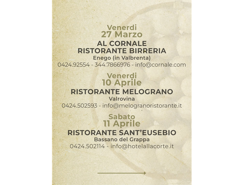 Un vero e proprio viaggio culinario dove la nostra eccellenza, l’asparago bianco, sarà il protagonista assoluto di menu.