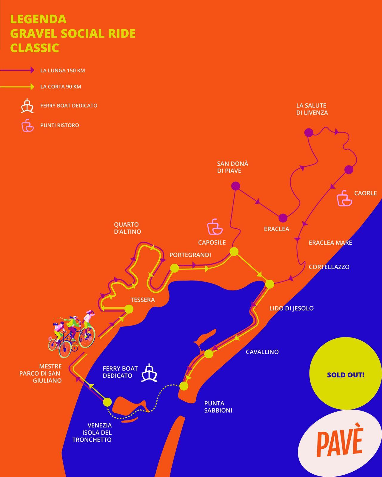 In occasione di PAVÈ – Pedalando a Venezia, il bike festival di narrazione in programma dall’8 al 10 maggio 2026, si terrà la Gravel Ride che si sviluppa su un tracciato ampio, articolato tra diversi ambienti del territorio veneziano e lagunare.