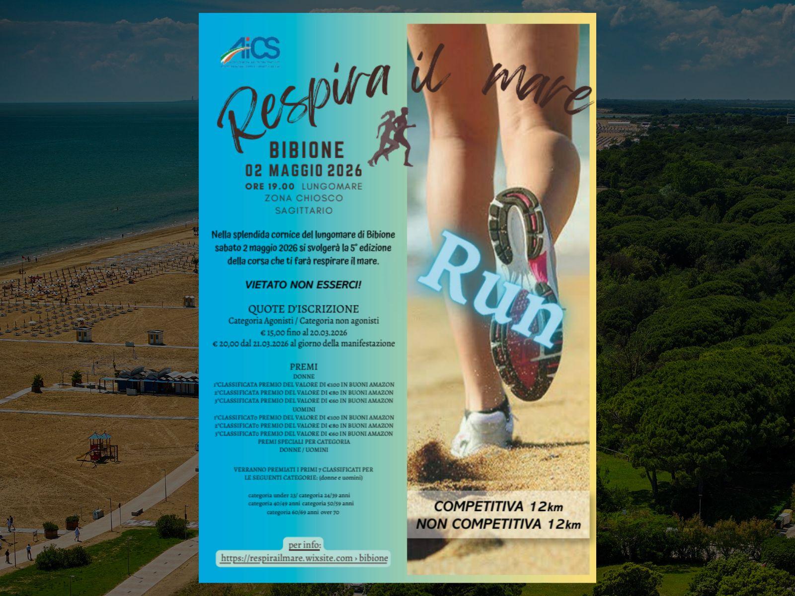 L'ASD Gruppo Marciatori Bibione organizza la 5^ edizione di "RESPIRA IL MARE" Run, in programma sabato 02 maggio 2026, aperta alle seguenti Categorie: