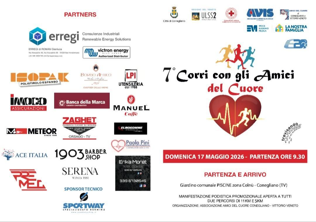 Con partenza alle ore 9.30 dalle piscine zona Colnù Conegliano, la corsa è aperta a tutti e vuole raccogliere fondi per l'attività associativa, che ha come scopo supportare la ricerca in campo cardiologico e realizzare iniziative a scopro preventivo.