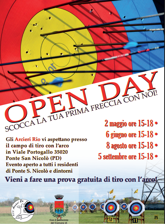 Gli Arcieri Rio vi aspettano presso il campo di tiro con l'arco in Viale Portogallo - evento aperto a tutti i residenti di Ponte San Nicolò e dintorni.