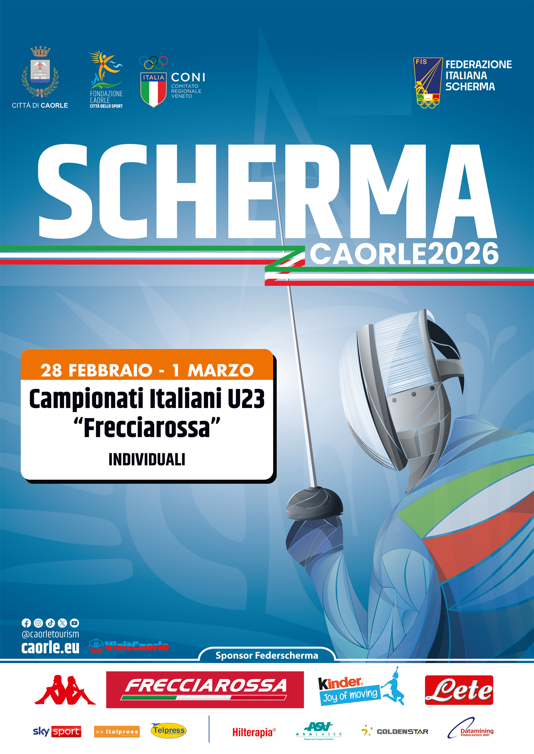 I Campionati Italiani Under 23 "Frecciarossa" individuali di Scherma portano a Caorle uno degli appuntamenti più significativi dedicati ai giovani talenti della disciplina. La manifestazione vede protagonisti atleti provenienti da tutta Italia, impegnati in gare che uniscono tecnica, velocità e strategia.