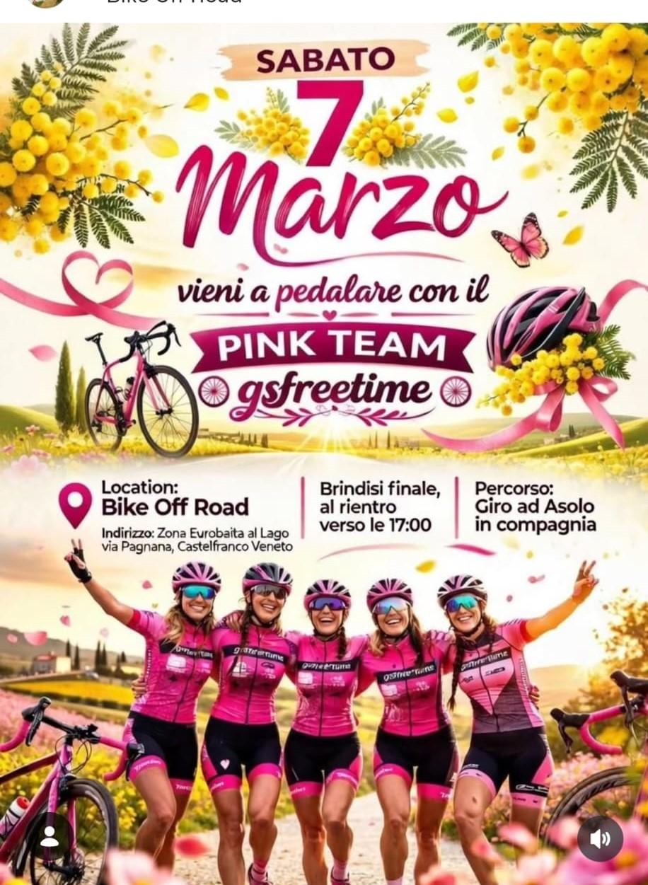 Come ogni anno il gs freetime per l'occasione della "Festa della Donna" organizzerà un Giro in Rosa aperto a tutte le donne e ad gli uomini che vorranno festeggiare insieme a noi