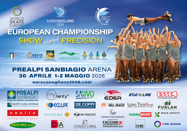 Dal 30 aprile al 2 maggio, la Prealpi SanBiagio Arena di Conegliano ospita la nuova edizione del Campionato Europeo di pattinaggio spettacolo e sincronizzato, promosso dalla Federazione Italiana Sport Rotellistici e organizzato dall'ADS Skating Club Don Bosco di Mareno di Piave.