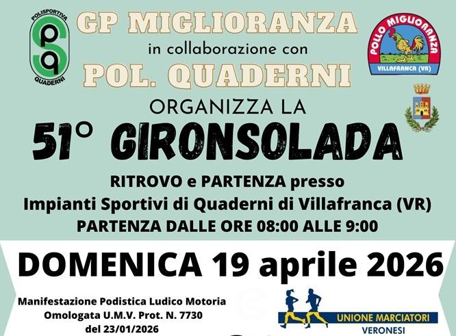 Siete pronti a rimettervi in marcia? Domenica 19 aprile 2026 torna uno degli appuntamenti podistici più amati del territorio: la Gironsolada di Quaderni di Villafranca!