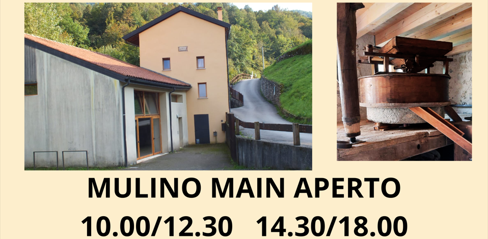 Il Mulino Main di Posina è aperto al pubblico tutte le domeniche dalle 10:00 alle 12:30 e dalle 14:30 alle 18:00.