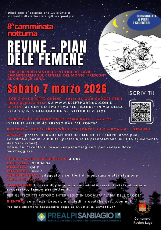 Partenza ore 19:00 presso Bar al Ponte di Revine Lago.