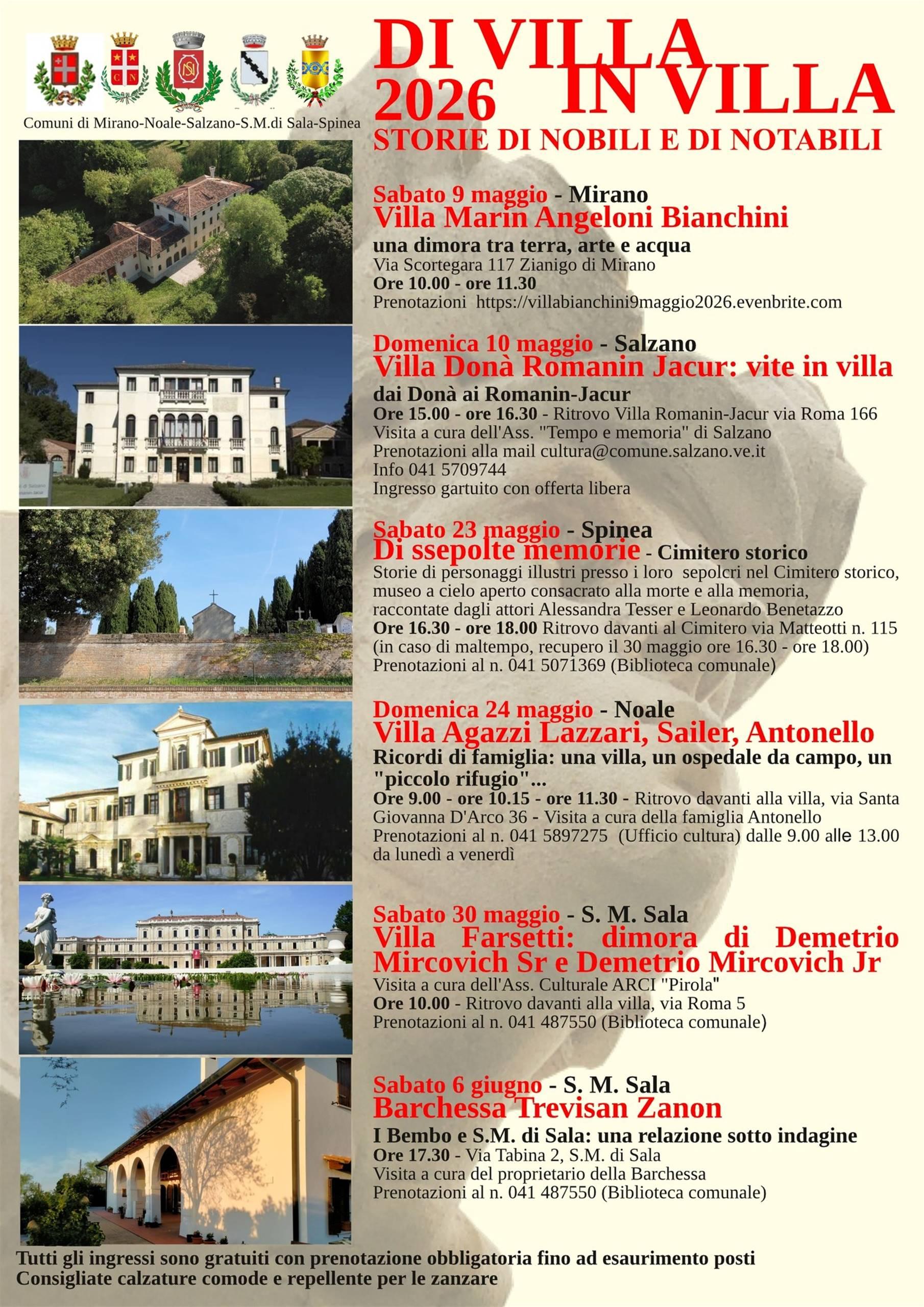Prenotazioni al n. 041 5897275 (Ufficio cultura) dalle 9.00 alle 13.00 da lunedì a venerdì