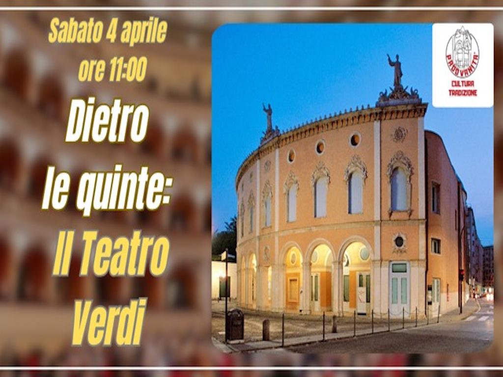 Gli addetti del Teatro Stabile del Veneto ci accompagneranno tra palchi, cunicoli e loggioni, facendoci toccare dal vivo il mondo del "dietro le quinte". Il Teatro Verdi venne realizzato dall'architetto padovano Giovanni Gloria, su progetto dell'architetto Antonio Cugini di Reggio. Nel 1751 venne inaugurato con un melodramma di Metastasio e fu chiamato "Teatro Nuovo e della Nobiltà". Nel 1847 fu ristrutturato al suo esterno da Antonio Monte su disegno di Giuseppe Jappelli.