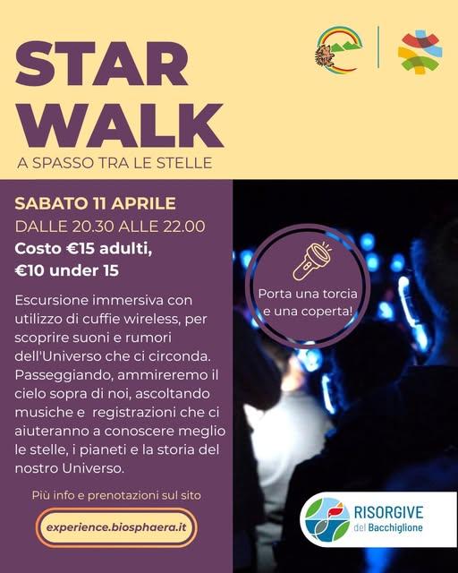 Sabato 11 aprile dalle 20:30 alle 22:00 presso le Risorgive del bacchiglione, a Villaverla, si terrà "Star Walk".