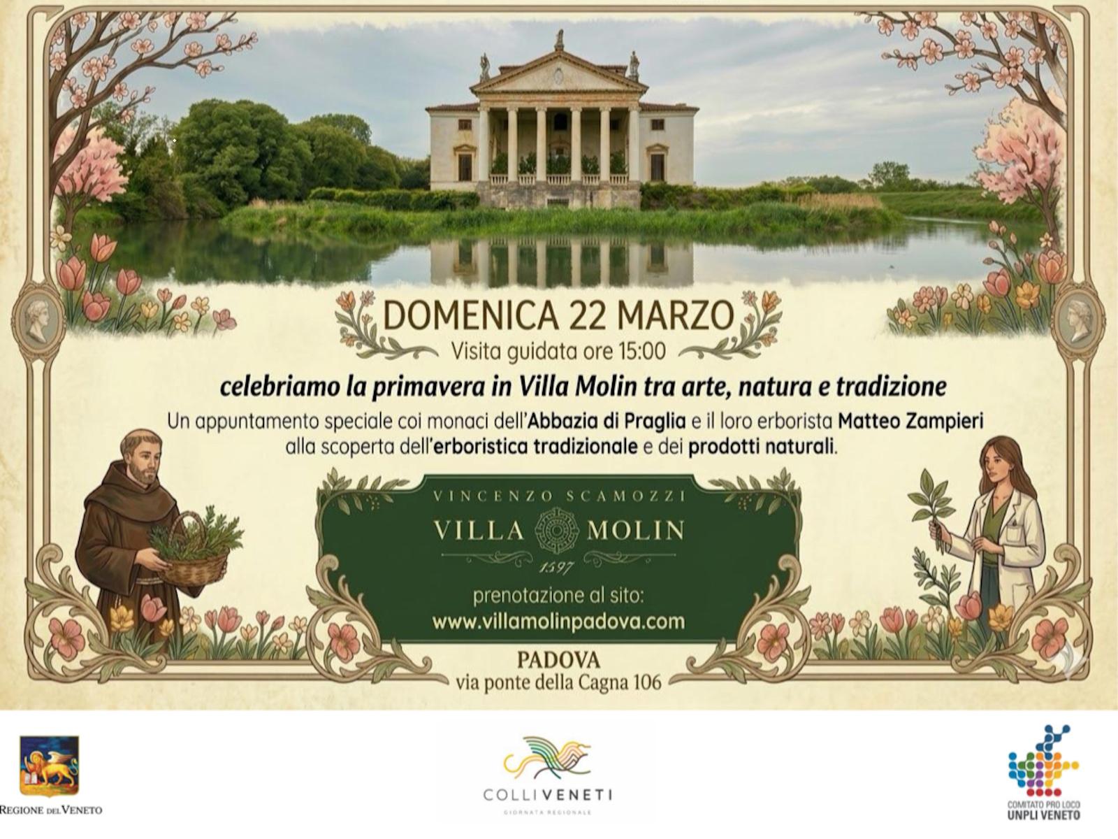 In occasione del primo giorno di Primavera e della giornata dei Colli Veneti, Villa Molin propone una visita speciale in collaborazione con l’Abbazia di Praglia.