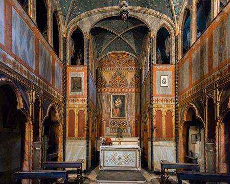 Una domenica pomeriggio al mese per poter visitare la cappella privata del castello, uno spazio intimo e privato, raro gioiello del neogotico, solitamente chiuso al pubblico. Costruita nel 1838 per la visita al Catajo degli Imperatori D’Austria, è una delle più bizzarre costruzioni dell’800 italiano, fatta di legno colorato, dorature e cieli stellati.VISITA:La visita della Chiesetta è in autonomia, con contenuto audioguidato ascoltabile sul proprio smartphone tramite QRcode.BIGLIETTI:L’accesso alla Chiesetta è compreso nel prezzo per chi acquista online la visita guidata IL CATAJO MAI VISTO.