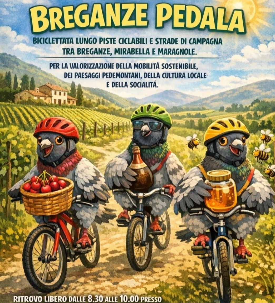 Domenica 24 maggio 2026 presso il Comune di Breganze, si terrà "Breganze Pedala" una biciclettata lungo piste ciclabili e strade di campagna tra Breganze, Mirabella e Maragnole.