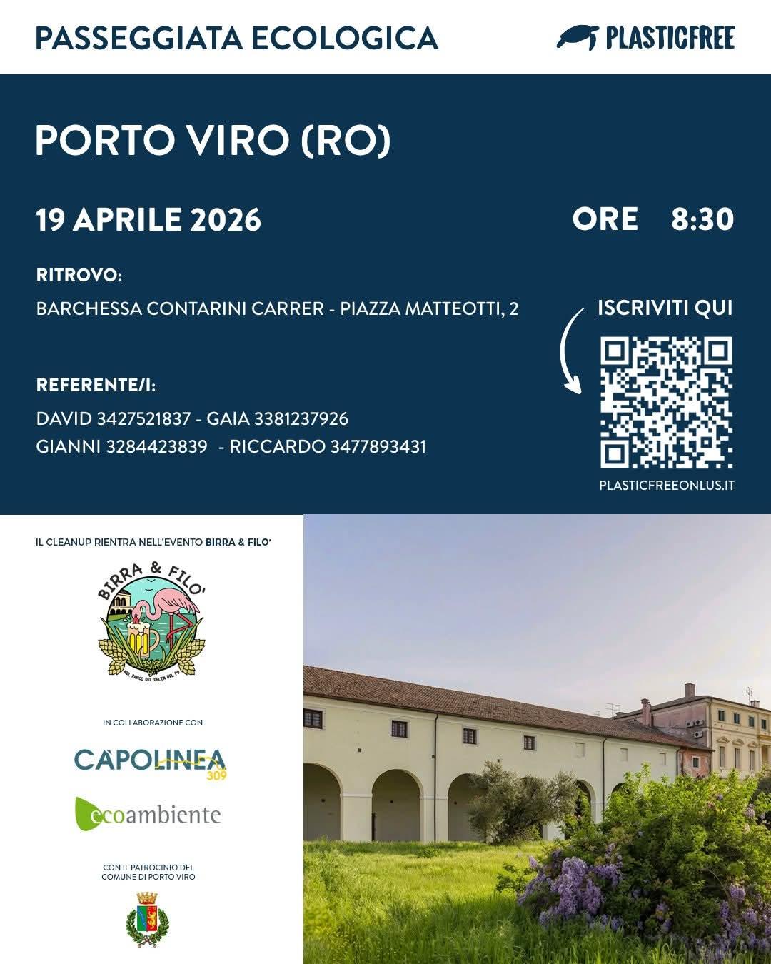 Domenica 19 aprile 2026, a Porto Viro, si terrà una passeggiata ecologica dedicata alla tutela dell’ambiente e alla sensibilizzazione contro l’inquinamento da plastica. L’iniziativa, promossa da Plastic Free, rientra nel programma dell’evento Birra & Filò.