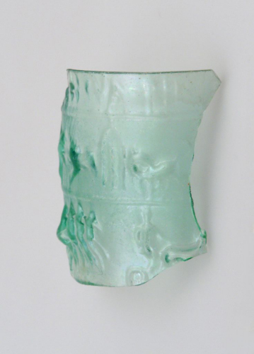 vetro di colore verde azzurro chiaro/ soffiatura a stampo