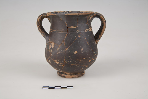 L'argilla è di colore arancio, la vernice è nero-bruna, opaca, diluita.