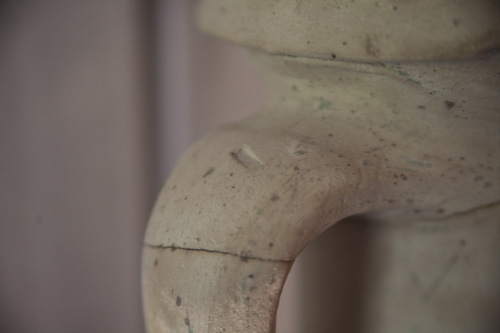 L'argilla è di colore beige rosato, chamotte in fitti grani medio grandi, inclusi bianchi.