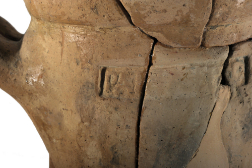 Sul collo, subito sotto lorlo, bollo, in cartiglio rettangolare con lettere in rilievo, molto consunte: PA[-]A[-]PP