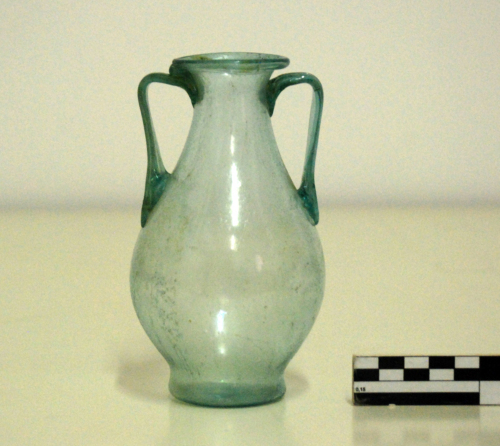 vetro/ a soffiatura libera/ applicazione a caldo di anse lavorate separatamente / vetro verdino/trasparente
