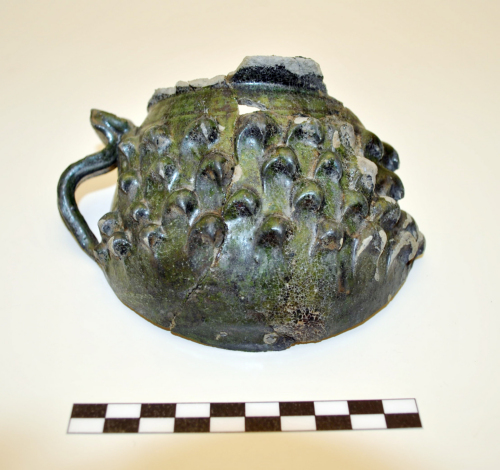 L'argilla, depurata, è di colore grigio chiaro, invetriatura verde scuro.