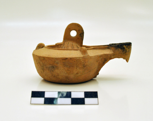 L'argilla è di colore nocciola, beccuccio annerito dal fuoco.