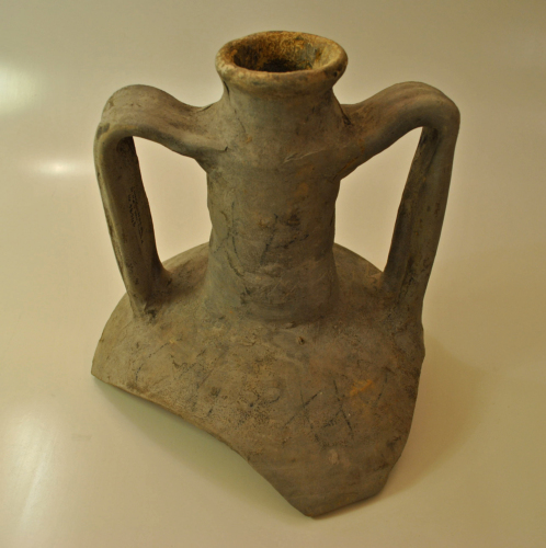 Si tratta di un'anfora vinaria del II sec. d.C., tipo Forlimpopoli, che prende il posto delle anfore vinarie italiche del periodo precedente, diffusa nellItalia centro-settentrionale tirrenica ed adriatica, alcune fornaci sono state scoperte in Emilia-Romagna a Forlimpopoli e a SantArcangelo di Romagna.