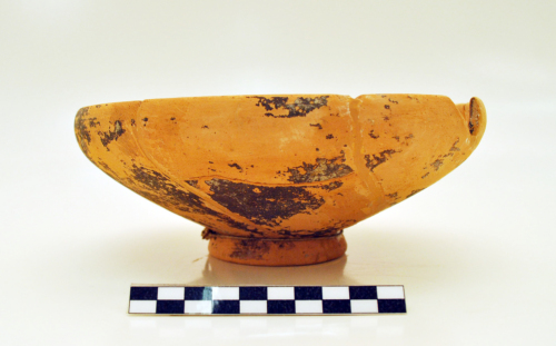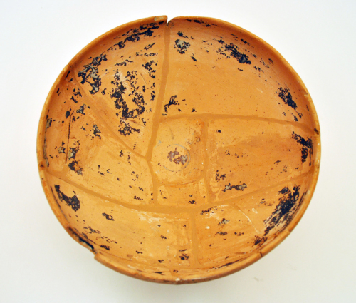 L'argilla è di colore beige-arancione, la vernice è nero-bruna, opaca, diluita.