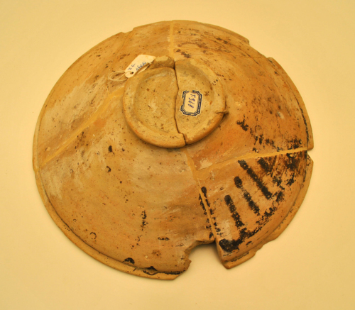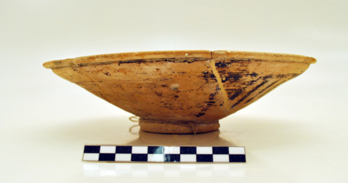 Patera con orlo a tesa e labbro orizzontale, rilevato sulla vasca, pareti svasate a profilo quasi rettilineo, piede ad anello a profilo arrotondato, sul fondo del piede è una X graffita.