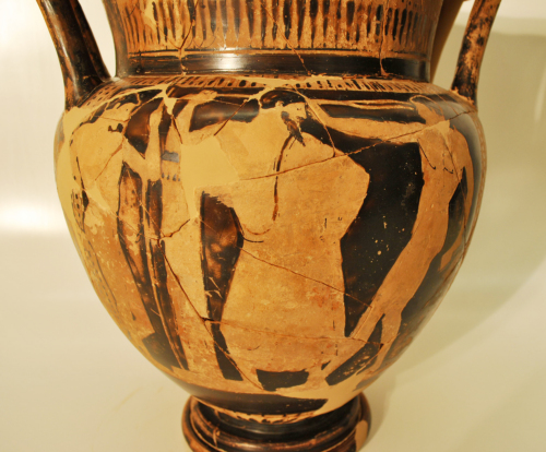 Lato B: due figure maschili nude in rapido movimento verso d. si dirigono verso un'altra figura maschile nuda che va loro incontro.