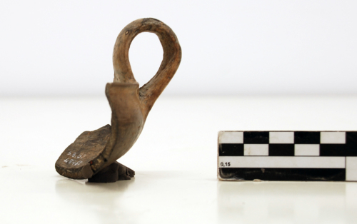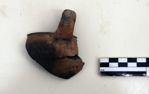 argilla/ a tornio/ ingobbiatura grigio-bruna/ steccature a stralucido / argilla grigiastra depurata, con inclusi calcarei di dimensione variabile.