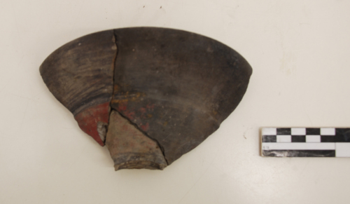 argilla/ a tornio/ rivestimento esterno rosso e nero / argilla nerastra semidepurata, con inclusi micacei e calcarei di dimensioni millimetriche.