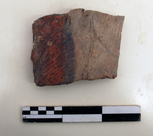 argilla/ a vernice rossa e blu/ a pettine / argilla rosata depurata, tendente al rosso e al nero per difetto di cottura